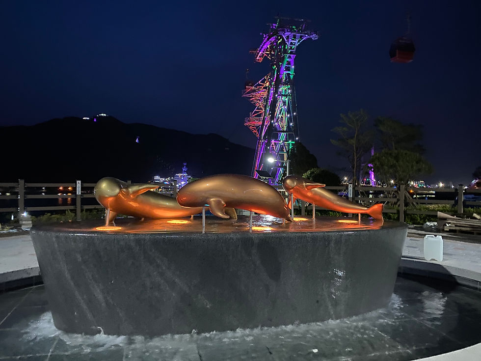 작품 ‘Eco_Propose #2 상괭이의 춤’은 수면 위로 모습을 드러내며 활발하게 유영하는 상괭이 무리 의 모습들을 형상화 하였다. 특히 사실성을 재현하기 위하여 분수 연출을 함께하였고, 관람자들과 작품, 그리고 상괭이에 대한 친근감을 더욱 강화하는 심리적 연출을 구현하였다.